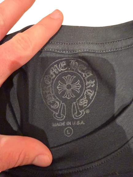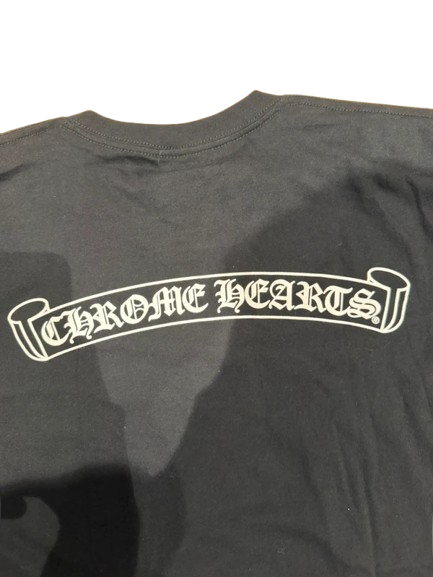 Das Chrome Hearts T-Shirt in Schwarz verbindet hochwertige Verarbeitung mit einem unverwechselbaren Design. Dieses brandneue, jedoch etikettenlose Kleidungsstück bietet stilvolle Lässigkeit und ist die perfekte Ergänzung für jeden anspruchsvollen Kleiderschrank. Mit der Größe L passt es ideal zu einer Vielzahl von Körperformen und bietet gleichzeitig einen bequemen und modernen Sitz.