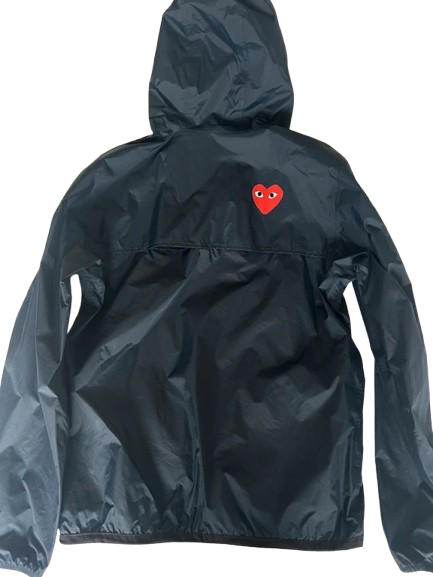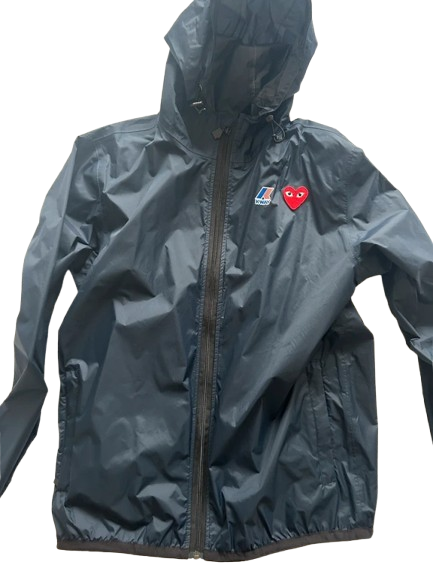 Die Comme des Garçon x K-Way Regenjacke in der stilvollen schwarzen Farbe integriert perfekt Funktionalität und exklusive Designerästhetik. Diese hochwertige Jacke bietet optimalen Schutz vor Regen, ohne dass du Kompromisse beim Stil eingehen musst. Perfekt für modische Menschen, die auch bei regnerischem Wetter gut gekleidet sein möchten.
