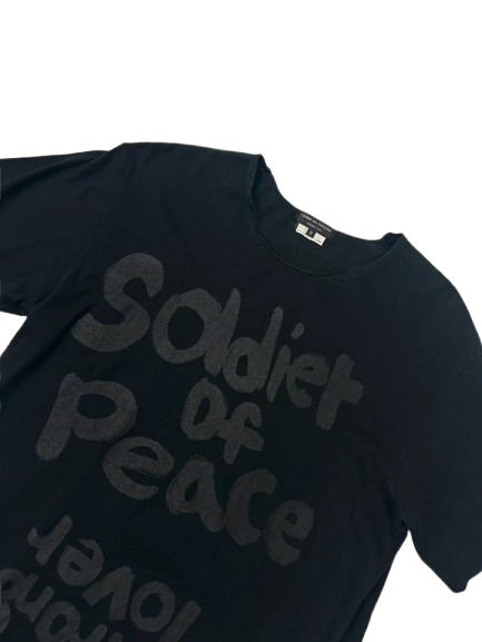 Dieses Shirt stammt aus der AD2014-Kollektion und trägt das ikonische Motto „Soldier Of Peace“. Wie alle Produkte von Comme Des Garçons steht auch dieses Modell für Kreativität, Detailgenauigkeit und hochwertige Verarbeitung. Es ist ein begehrtes Sammlerstück für Fans der Marke und Modekenner gleichermaßen. Die perfekte Wahl für alle, die ihren Kleiderschrank mit einem Stück Modegeschichte bereichern möchten.