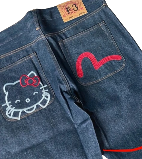 Verpassen Sie nicht die Gelegenheit, diese seltene und stilvolle Kombination aus Hello Kitty und Evisu zu besitzen. Die Evisu Hello Kitty RAW Denim steht für Qualität, Individualität und einen Hauch von verspieltem Luxus – machen Sie sie zu Ihrem nächsten Lieblingsstück.