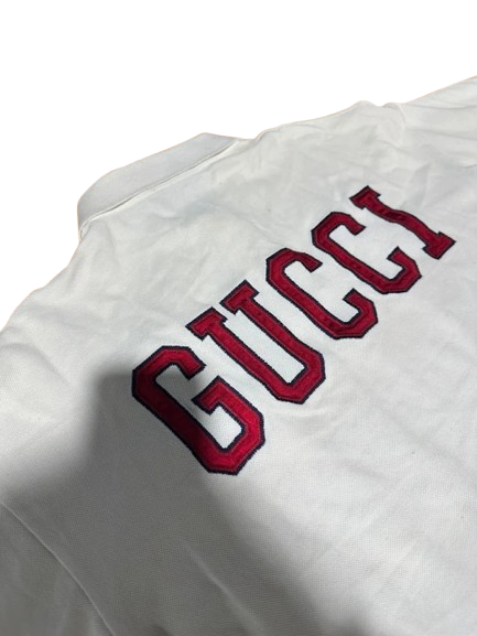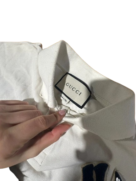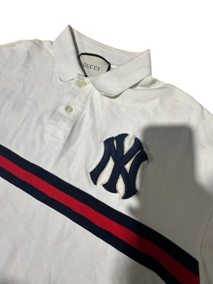 Erleben Sie die perfekte Mischung aus Eleganz und sportlichem Stil mit dem Gucci NewYork Polo in Weiß. Dieses außergewöhnliche Kleidungsstück verkörpert die hochwertige Verarbeitung und das unverwechselbare Design, für das Gucci bekannt ist. Dank seines neuwertigen Zustands ist dieses Polo-Shirt nicht nur eine Bereicherung für jede Garderobe, sondern auch ein Ausdruck von zeitloser Raffinesse und Stil.