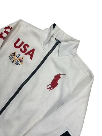 Kaufen Sie jetzt den Polo Ralph Lauren Zipper in Weiß mit rotem Detail und großem Reiter – ein Must-have für Liebhaber von hochwertiger Mode, die Wert auf Komfort und Exklusivität legen.