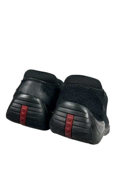 Die Prada Cups Sport Sneaker stehen für herausragende Handwerkskunst und unvergleichlichen Komfort. Die schwarze Farbgebung sorgt für vielseitige Kombinationsmöglichkeiten, egal ob Sie den sportlichen oder lässig-eleganten Look bevorzugen. Dank des hochwertigen Materials und der präzisen Verarbeitung erleben Sie bei jedem Schritt ein angenehmes Tragegefühl. Diese Sneakers sind nicht nur ein Mode-Statement, sondern auch ideal für den Alltag oder spezielle Anlässe.