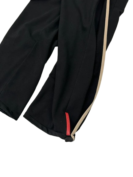Entdecken Sie die Prada Sport Jogger Baggy Track Pants in der klassischen Farbe Schwarz – ein echtes Highlight für Ihre Garderobe. Diese Jogginghose verkörpert den perfekten Mix aus sportlichem Komfort und luxuriösem Design. Mit ihrer neuwertigen Verfassung und hochwertigen Verarbeitung bietet sie eine elegante Option für Freizeitaktivitäten oder entspannte Tage.