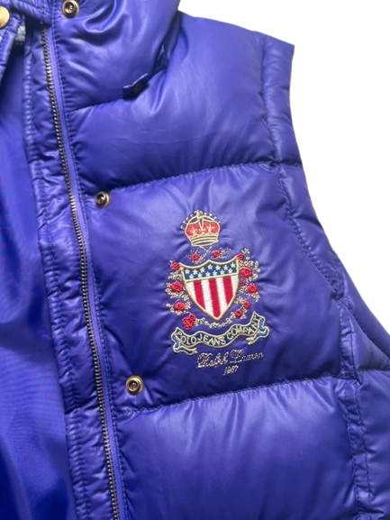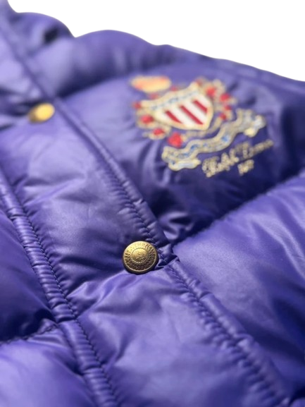 Wenn Sie also nach einem einzigartigen, hochwertigen Kleidungsstück suchen, das Komfort, Stil und Qualität bietet, dann ist diese Ralph Lauren Polo Weste in Lila, Größe L, die perfekte Wahl. Holen Sie sich ein Stück Vintage-Eleganz für Ihre Garderobe!
